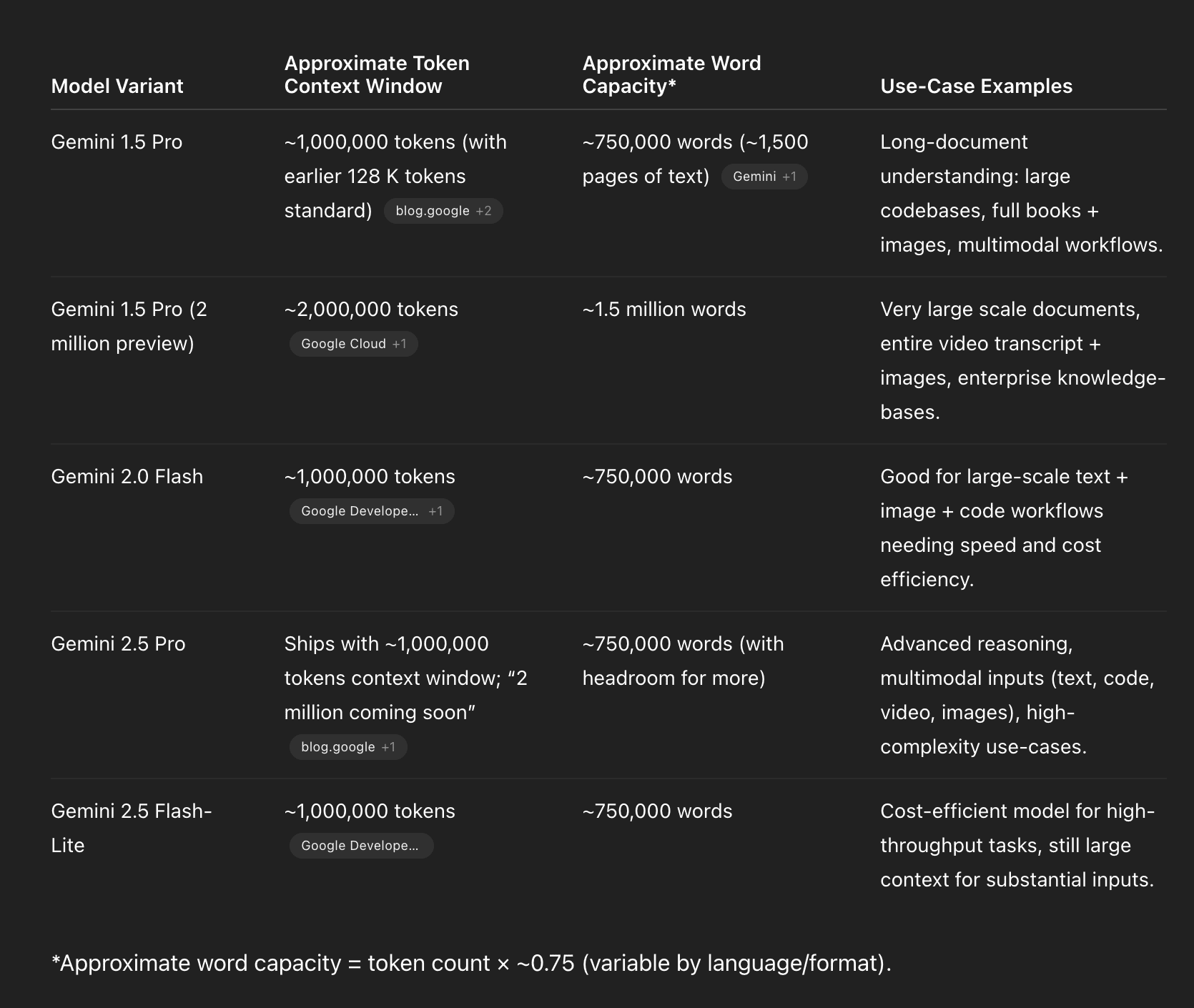Here’s a quick breakdown to help you understand their context window limits, how many words they can handle, and where each performs best:
