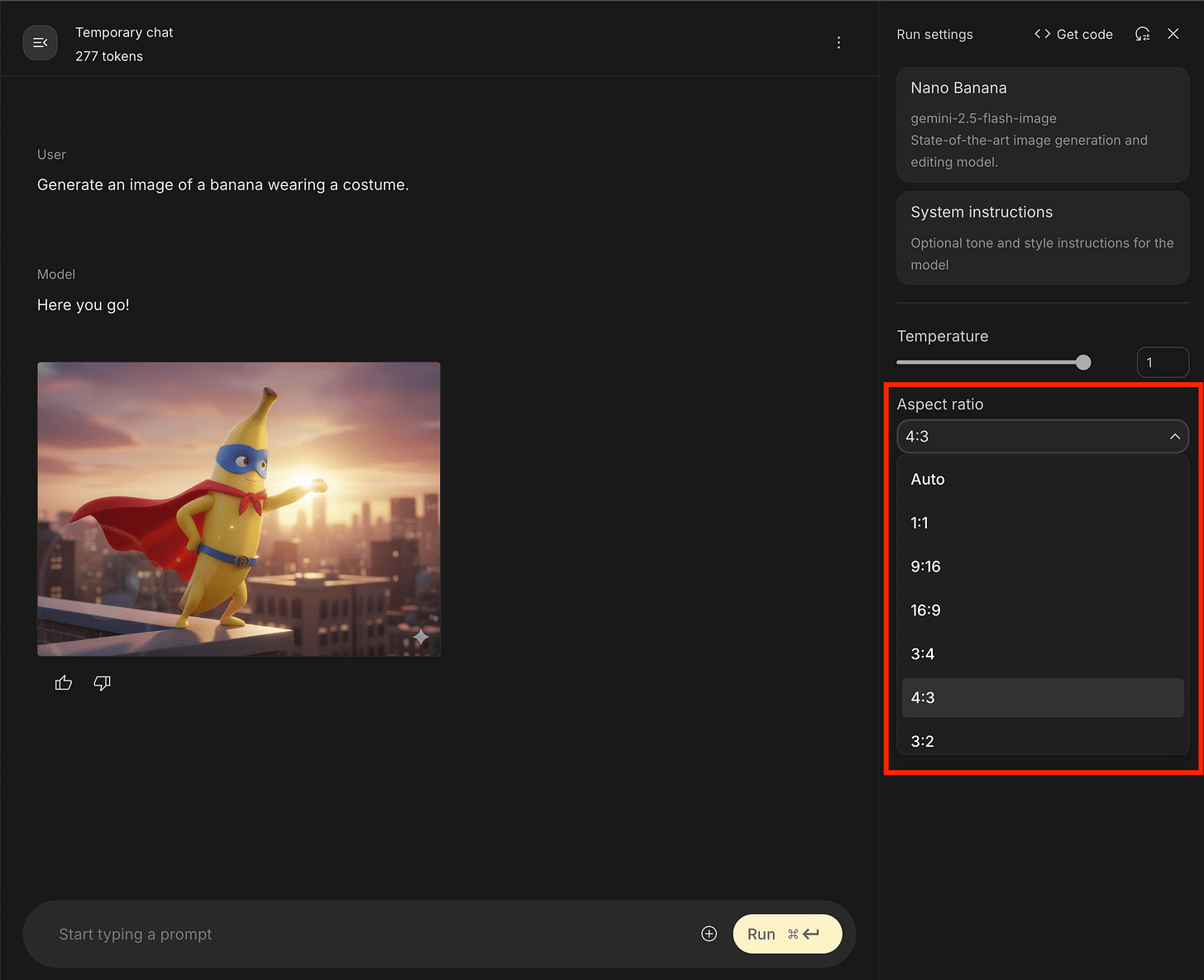 So, I use Google AI Studio, where I can use Nano Banana to generate and edit images in the size I want.
