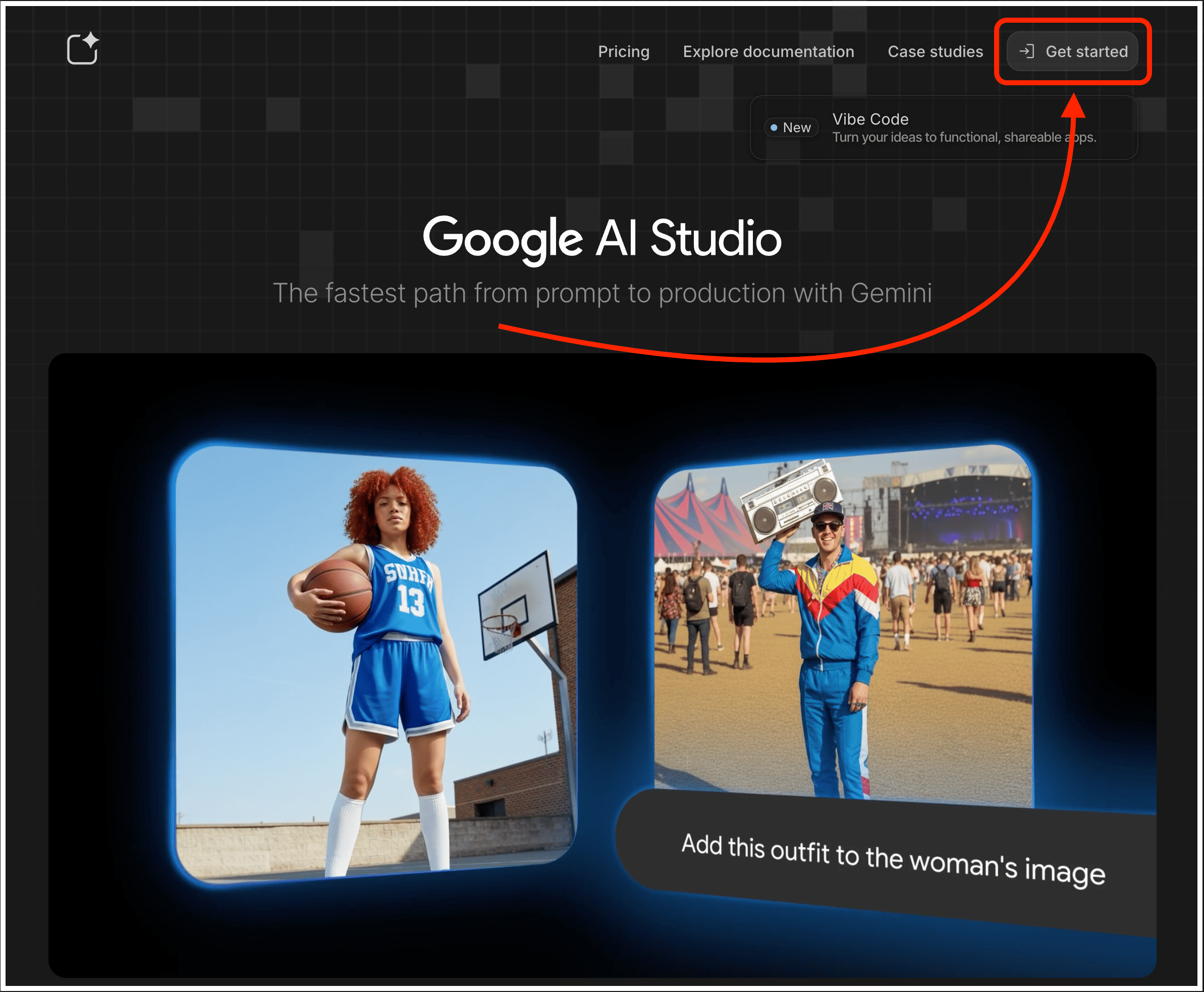 To get started, simply visit the Google AI Studio website and click on the “Get started” button.
