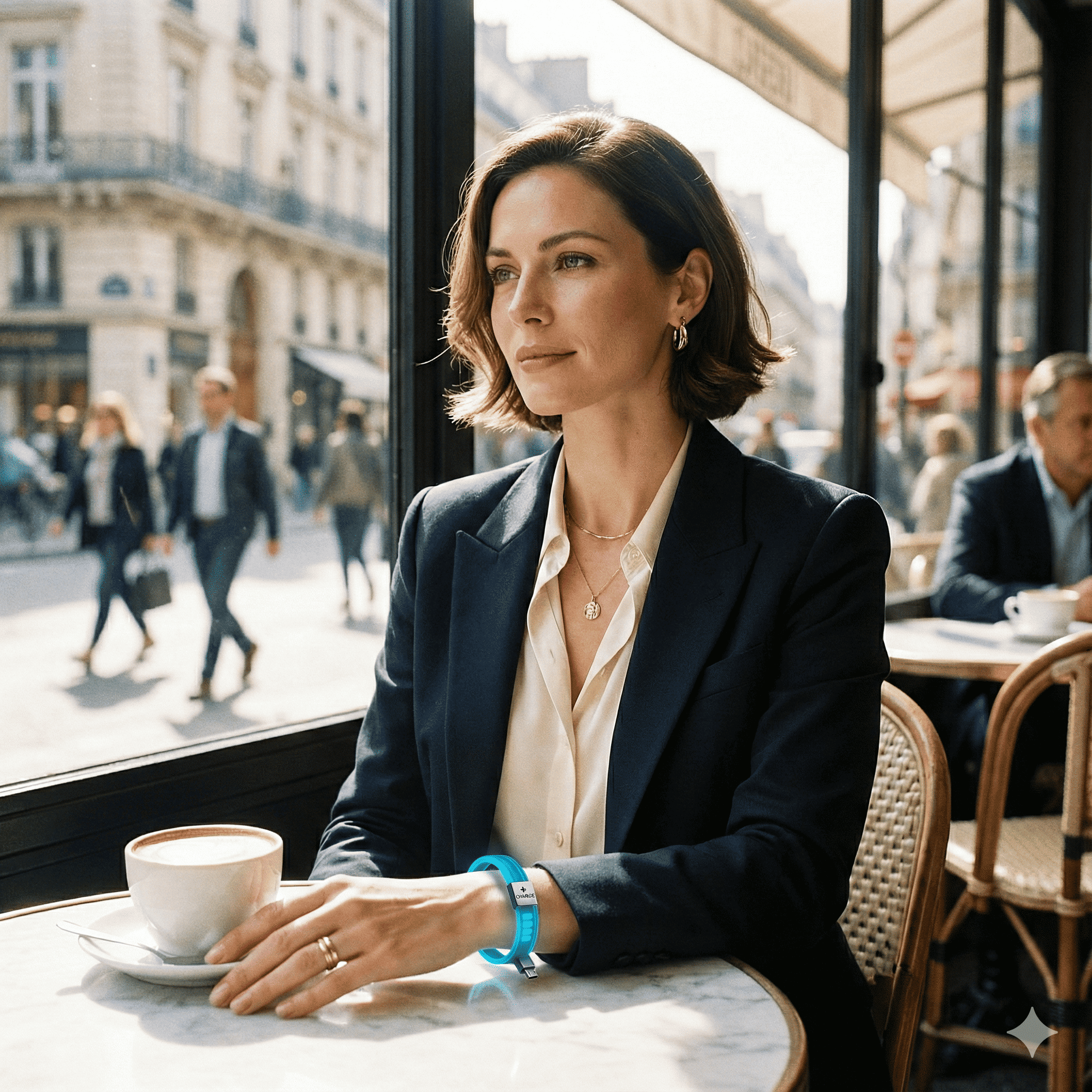 And here’s the prompt: Show this specific product device being used by a beautiful european woman in a busy New York subway station. The product should be held in the left hand. Maintain product consistency strictly. Shot on 35mm film, grainy texture.