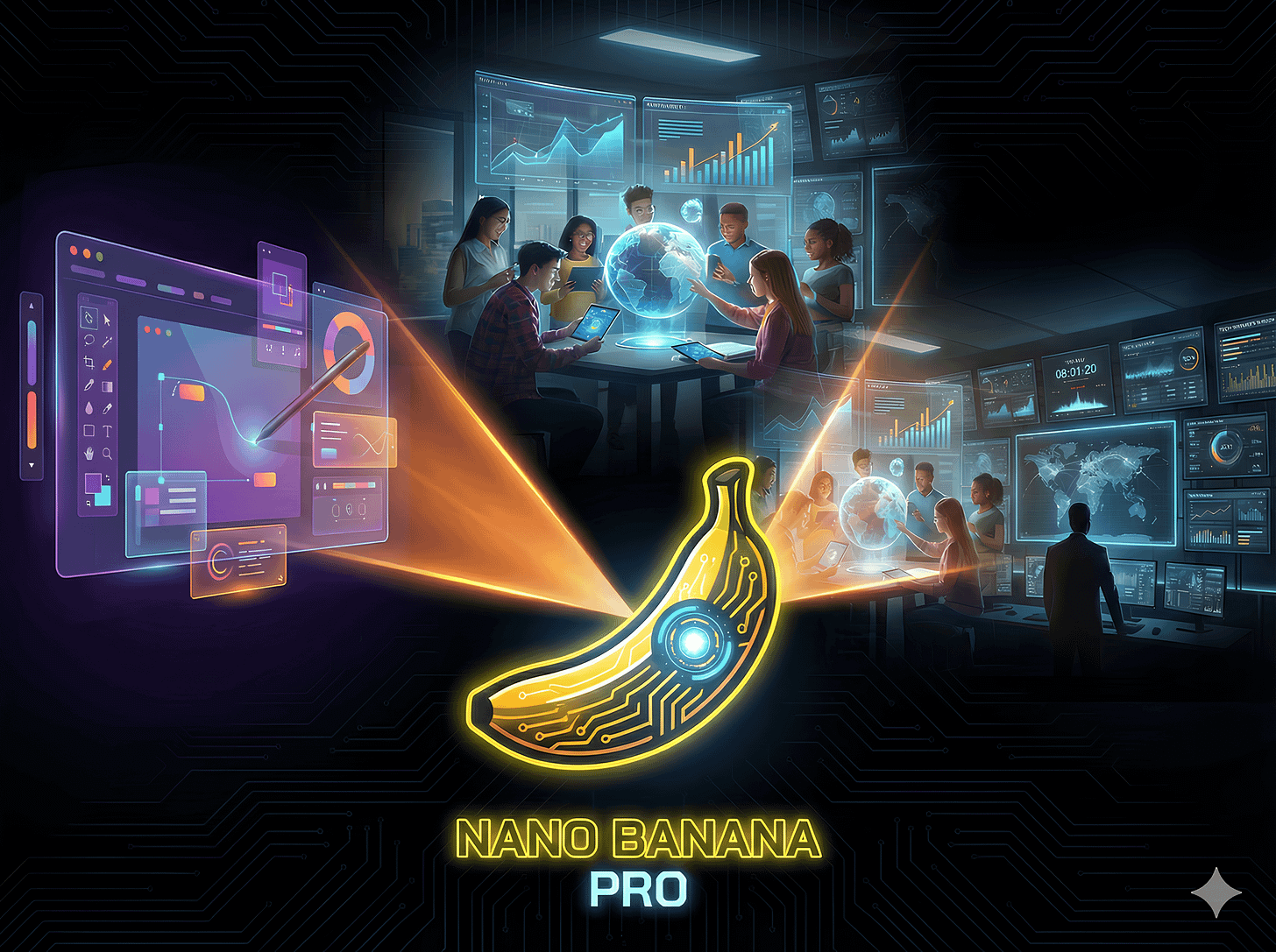 Here’s the prompt I used: Dark futuristic background with a glowing yellow AI-infused banana at the center labeled “Nano Banana Pro”, emitting three radiant beams. Each beam transforms into a different environment: a designer’s creative studio with floating interface elements and stylus-driven UI blocks, a modern classroom with holographic teaching tools and dynamic lesson flows, and a tech founder’s war room full of dashboards, metrics, and launch roadmaps. High contrast, neon edges, dramatic lighting, sharp typography, designed for high CTR on newsletters, bold and irresistible visual composition. The generated image size should be 1600px * 1200px.
