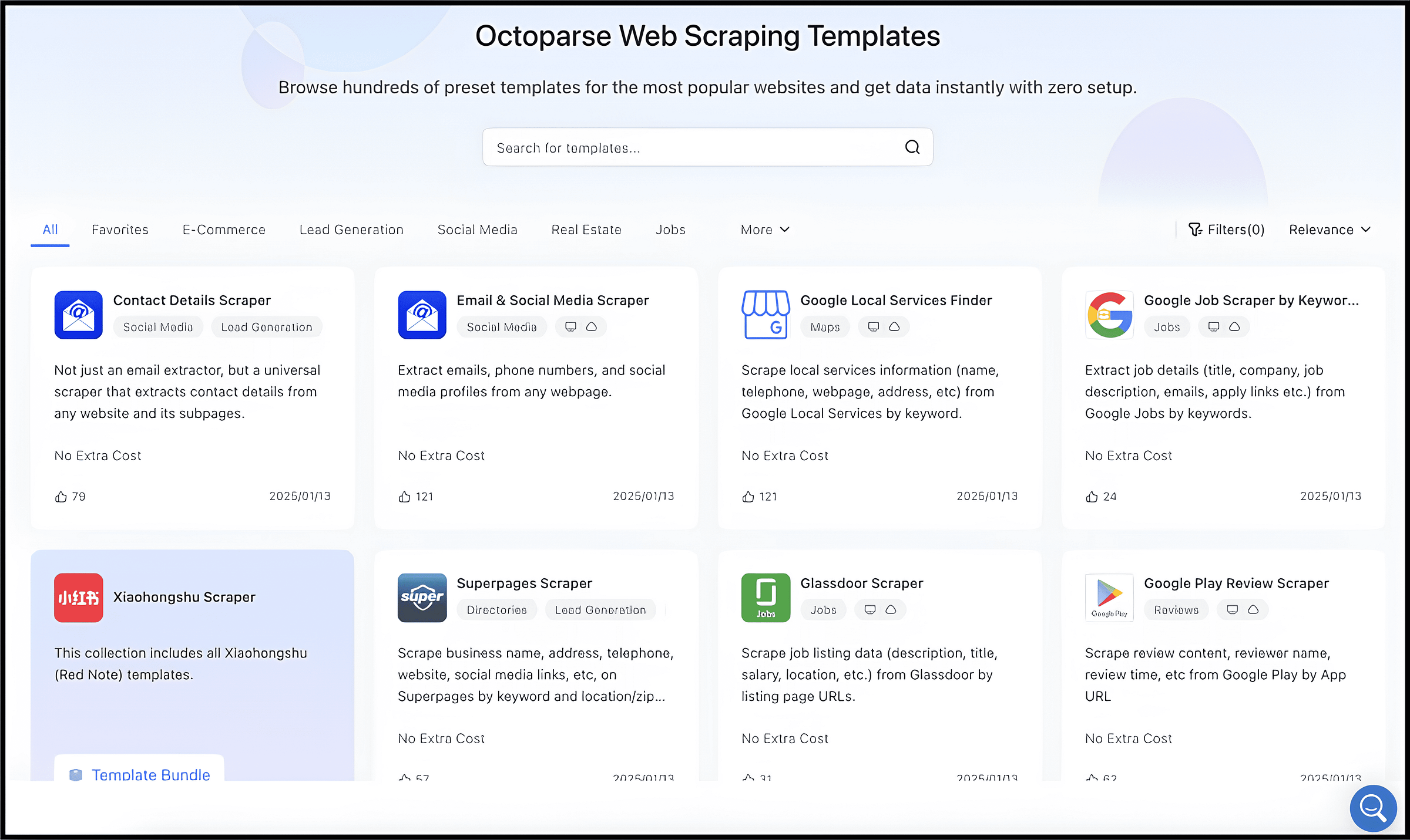This allows you to use any of these prebuilt templates and scrape websites in no time.