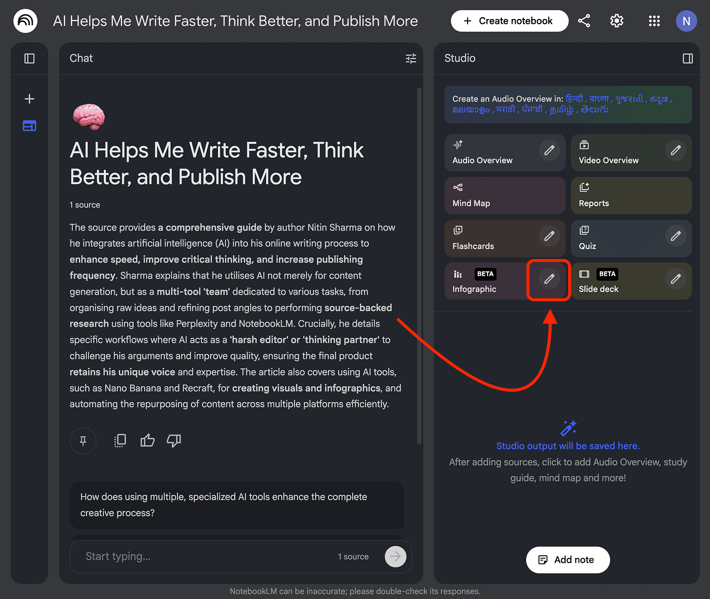 You see, I uploaded my article, and NotebookLM generated an informative infographic based on it. This alone cut my visual content creation time by more than half.