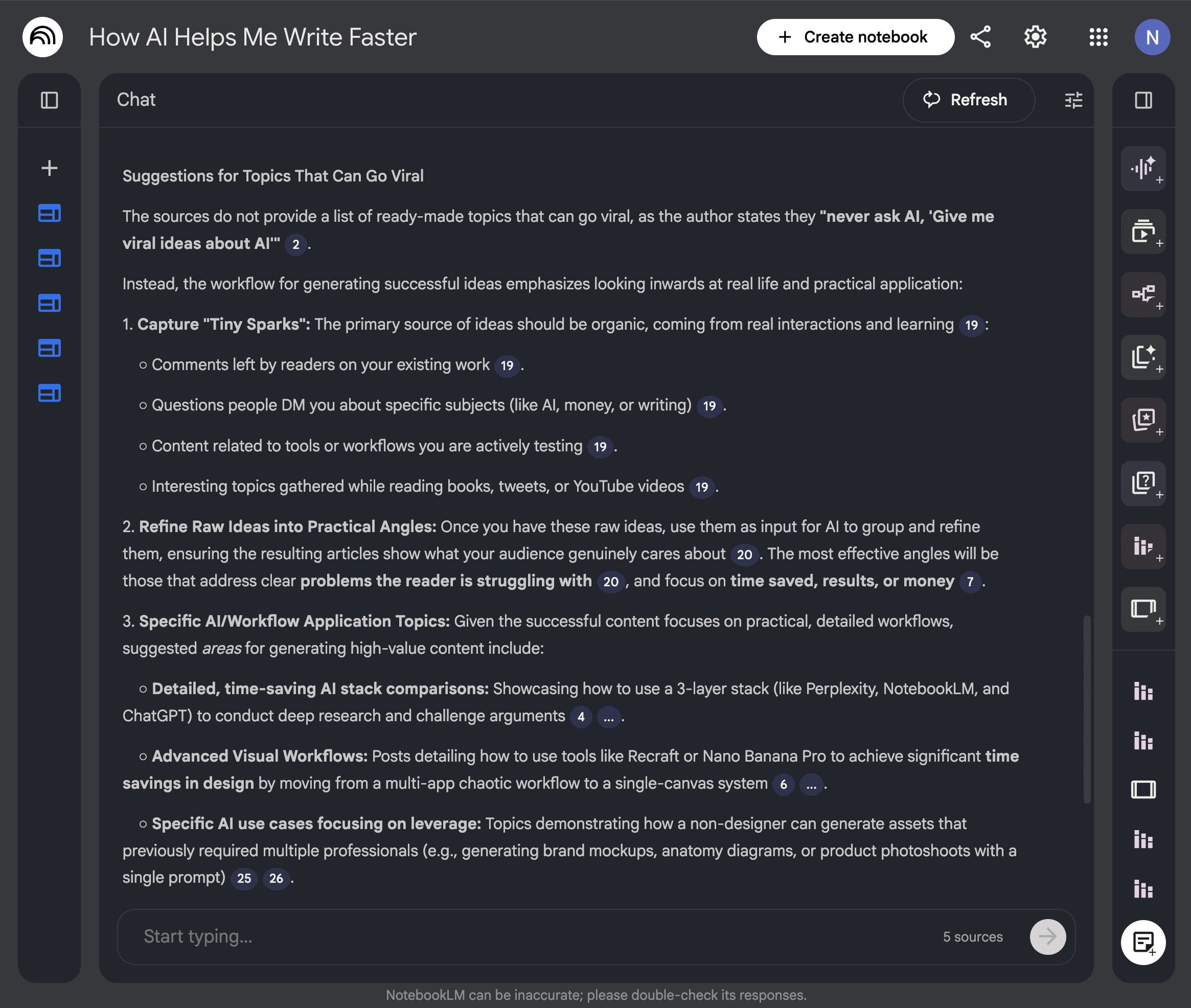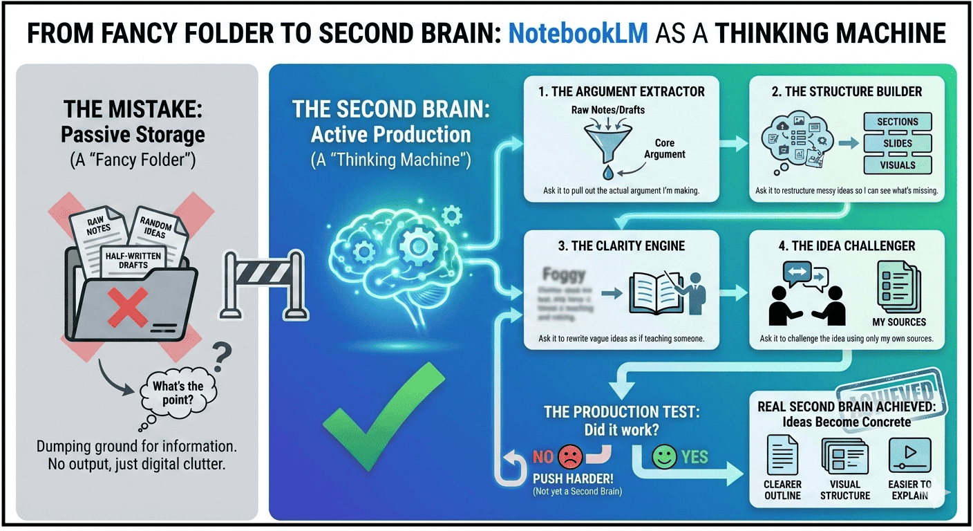 Instead of asking NotebookLM to create new ideas, I use it to compress existing ones.