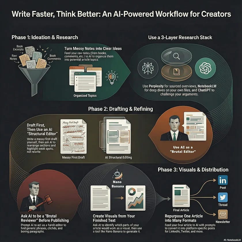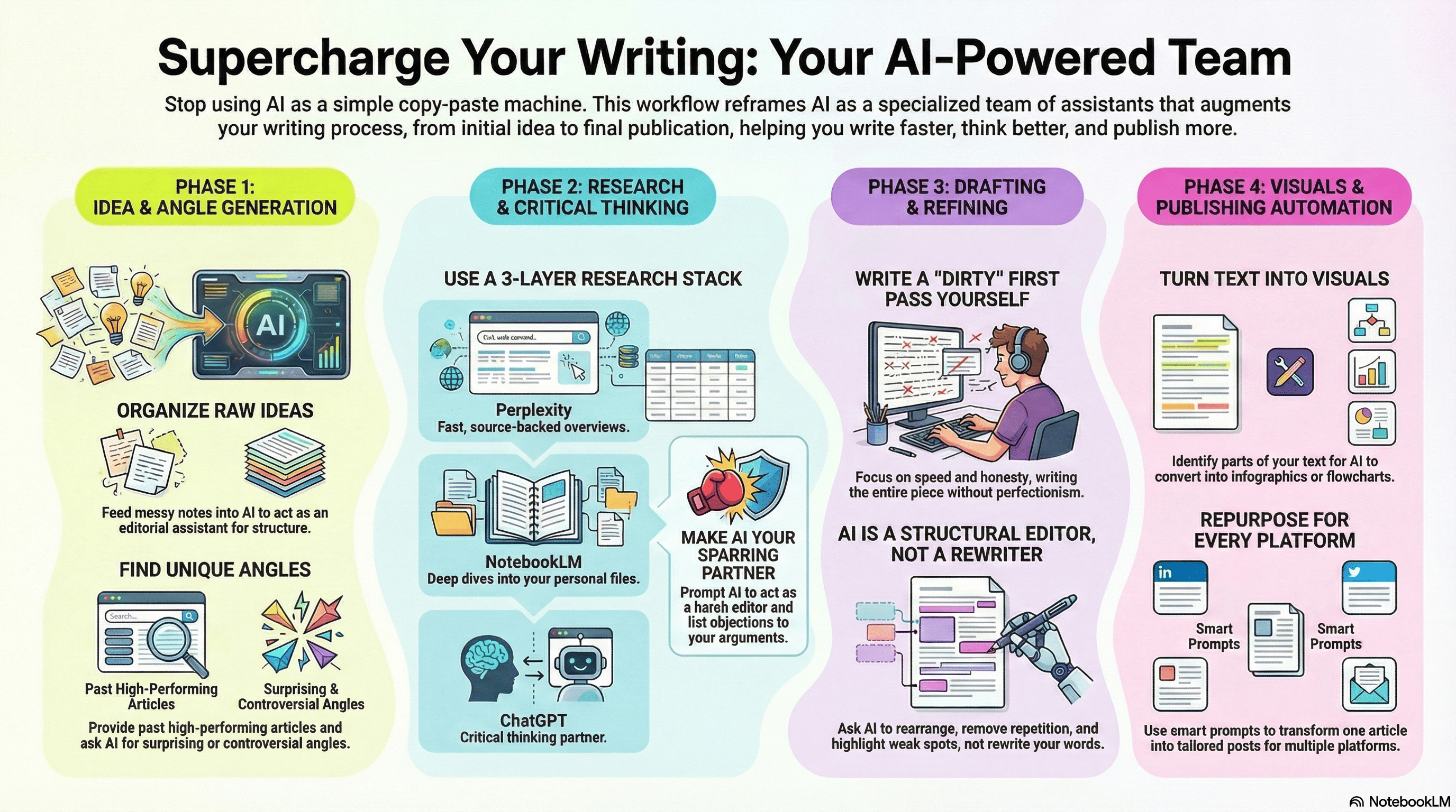 So in this post, I want to show you how I’m using the latest NotebookLM features to turn raw content into real outputs, and how this fits into my actual writing and thinking workflow.