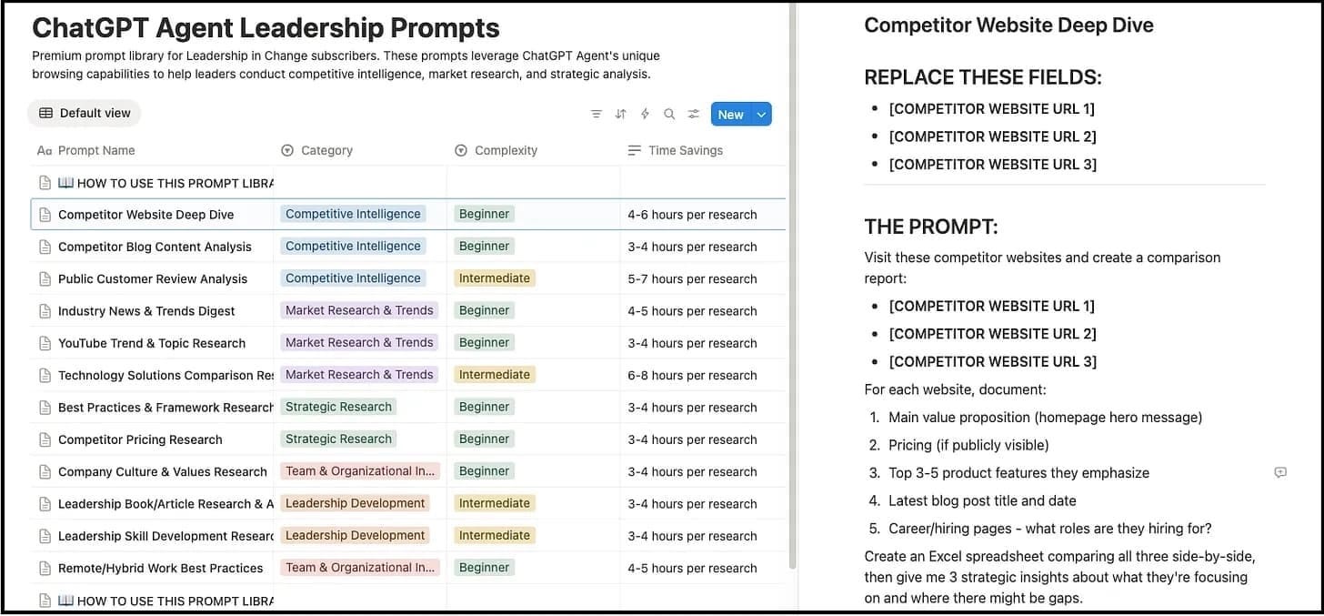 For Leadership in Change Premium members, I’ve documented all 25 agents in a prompt dashboard you can copy and customize. It’s the single resource that’s saved my members the most time.