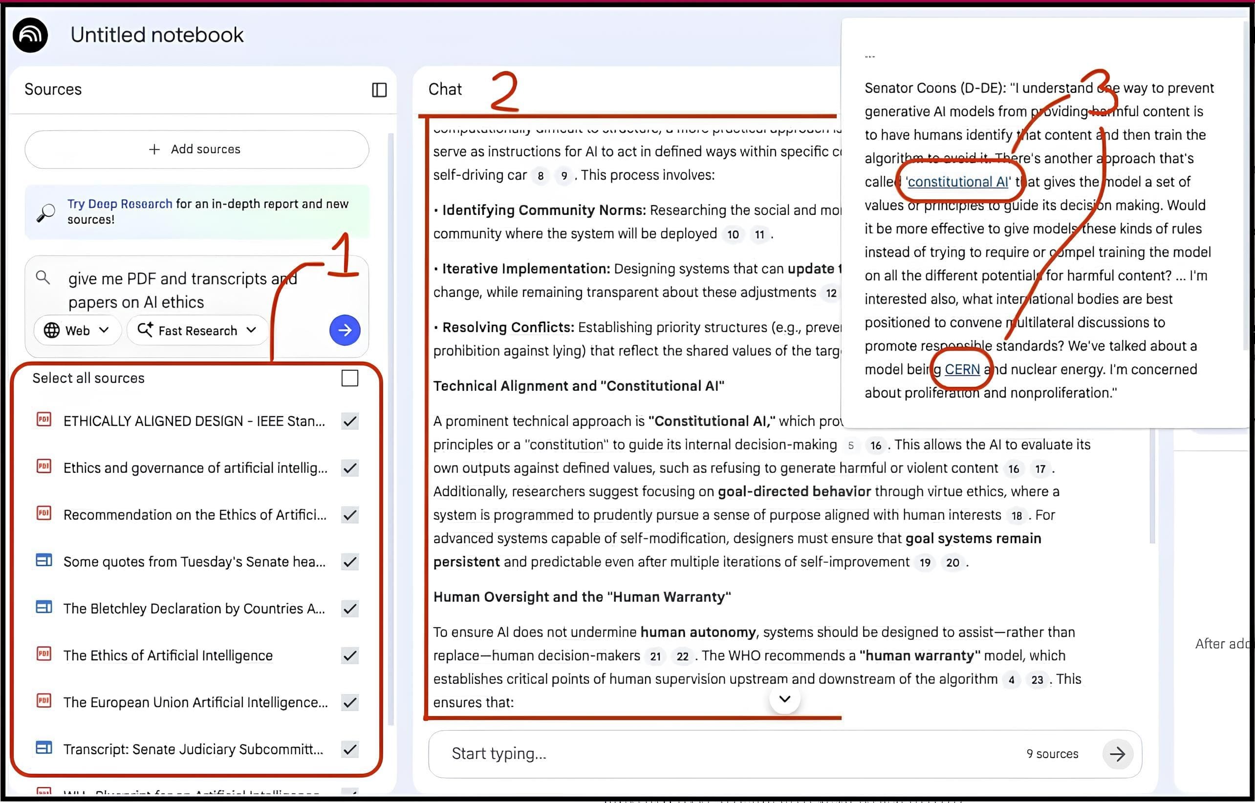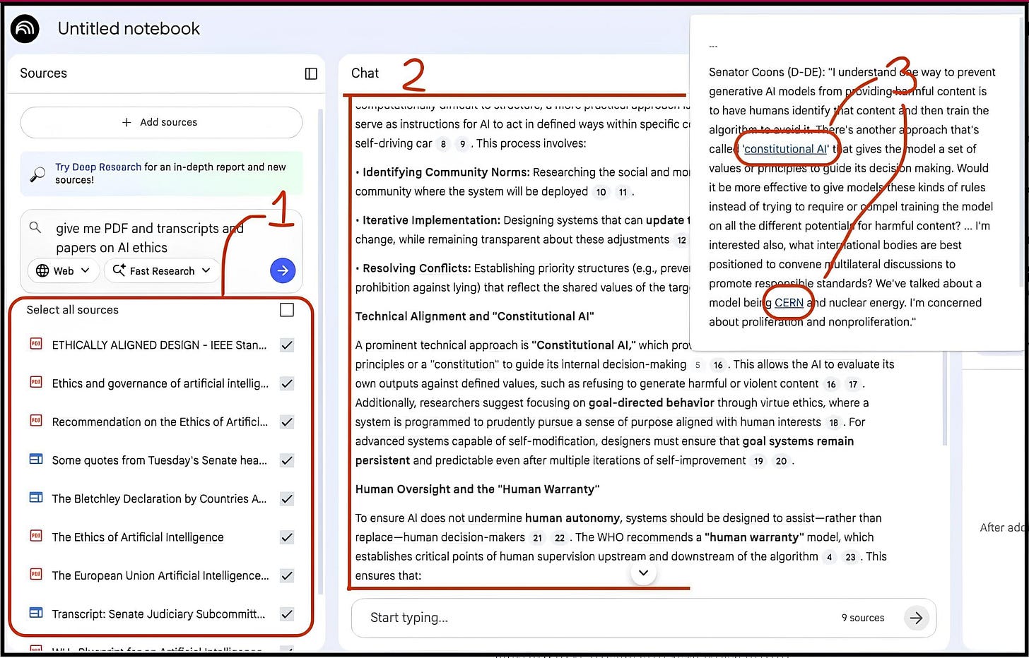 Last month, I researched AI ethics frameworks for leaders. I uploaded three papers, two tech ethics reports, and my own notes from meetings. NotebookLM synthesized insights I could cite with complete confidence because every single claim traced back to a source I had personally verified.
